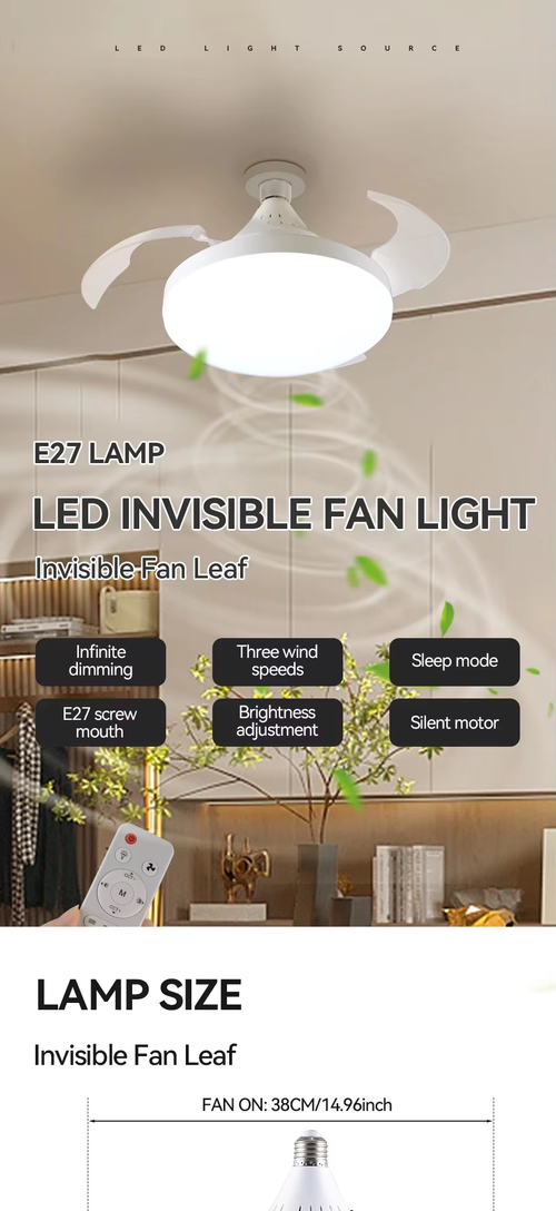 LED fan light remote control ceiling fan light E27 lamp base 3 fan blades silent dimmable home fan light
