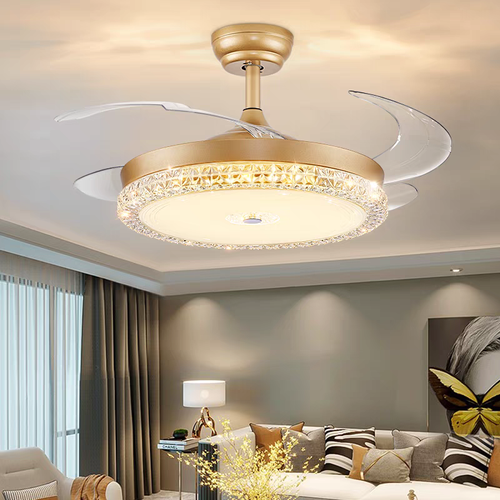 Modern simple invisible fan lamp with fan and remote control energy-saving foldable blades suitable for children's room bedroom dining room