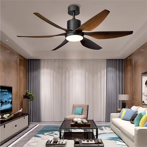 Modern Style Indoor Ceiling Fan Light 5 Straight Wooden Blades 6-Speed Reversible DC Motor 3-Color Dimmable LED Remote Control